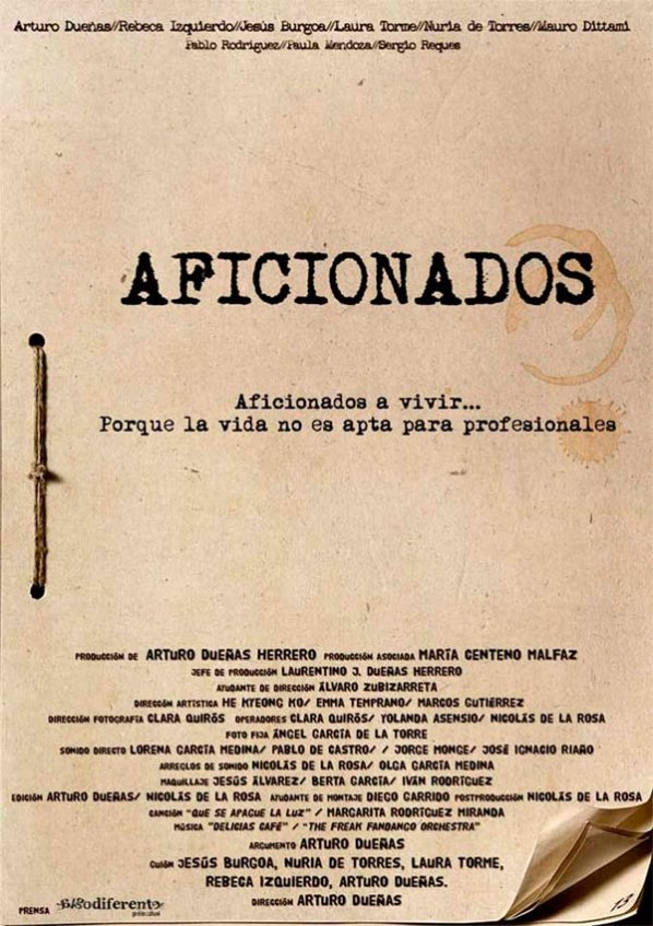 Título: Aficionados Género: Drama Año de estreno: 2013 Director: Arturo Dueñas Herrero Reparto: Rebeca Izquierdo, Jesús Burgoa, Nuria de Torres,