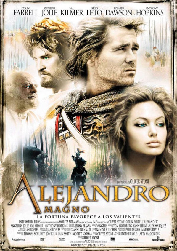 Leer másTítulo: Alejandro Magno Género: Biográfica Año de estreno: 2005 Director: Oliver Stone Reparto: Colin Farrell, Angelina Jolie, Anthony Hopkins, Val